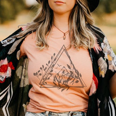 Vintage Faded Peach Geometric Triangle Design Tee Shirt
